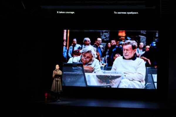 Sottotitolato “Il teatro oltre il tempo”, il festival si è aperto con un interessante saggio in azione, lo spettacolo Sulla difficoltà di dire la verità, basato su un saggio letterario-politico di Bertold Brecht, scritto negli anni ’30, quando Hitler salì al potere in Germania e Brecht andò in esilio in Danimarca. Lo spettacolo è stato ideato e realizzato da un team di autori ravennate, il regista Davide Sacco e l’attrice e drammaturga Agata Tomšič, nucleo del gruppo teatrale indipendente “ErosAntEros”, fondato sulla convinzione che il teatro debba essere politico, che debba cambiare il mondo e offrire resistenza alle perversioni sociali, come il fascismo. Questo spettacolo monodrammatico è composto da cinque parti, cinque difficoltà che Brecht riconobbe nel processo di scrittura della verità, come forma di opposizione alla menzogna e all’ignoranza. Questi sono il coraggio di scrivere la verità (che è ovunque soppressa), l’intelligenza di riconoscerla (sebbene sia ovunque nascosta), l’abilità di renderla utilizzabile come arma, la ponderatezza di scegliere coloro nelle cui mani la verità sarà efficace, così come l’astuzia di diffonderla tra questi ultimi. Tra queste cinque parti sono inseriti degli intermezzi che sottolineano il problema della stratificazione sociale e del patriarcato violento, come compagni inseparabili del fascismo. L’attrice che interpreta questa interessante performance, dal significato attuale ancora oggi, recita il testo di Brecht in modo onirico, poetico e cerimonioso, accompagnandolo con movimenti del corpo lenti e convulsi, che ricordano il lavoro del regista Eugenio Barba. La sua performance è organicamente integrata in un paesaggio visivo-sonoro ipnotico; sullo schermo si alternano potenti fotografie contemporanee dell’artista Michele Lapini che documentano la miseria sociale, le proteste, i problemi ambientali e politici del mondo odierno, contestualizzando così in modo chiaro il significato del saggio di Brecht, in un’epoca come la nostra, sconvolta a livello globale dal risveglio del fascismo e dall’implacabile persecuzione della verità.”