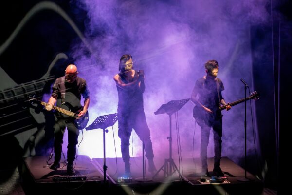 È per questo motivo che l’adattamento teatrale che Davide Sacco, di ErosAntEros, sta mettendo in scena in questi giorni, e fino a domani, a Teatri di Vita, risulta quanto mai attuale, con le immagini di una Gaza rasa al suolo che, scorrendo dietro i protagonisti di quello che è stato concepito come concerto-spettacolo, contribuiscono a colpire profondamente gli animi degli spettatori i quali, ascoltando il recitato di una bravissima Eva Robin’s cui si alternano brani musicali eseguiti, in stile dark anni ‘80, da La Mano Sinistra, di cui fanno parte lo stesso regista alla voce con Giuseppe Lo Bue e Gianluca Lo Presti, che ne ribadiscono i concetti, hanno a poco a poco sentito incrinarsi la gioia degli abitanti di Omelas, una città perfetta, governata rettamente senza bisogno di governanti, unita nella fede senza bisogno di una religione, inebriata dall’amore libero senza incrinare la morale.